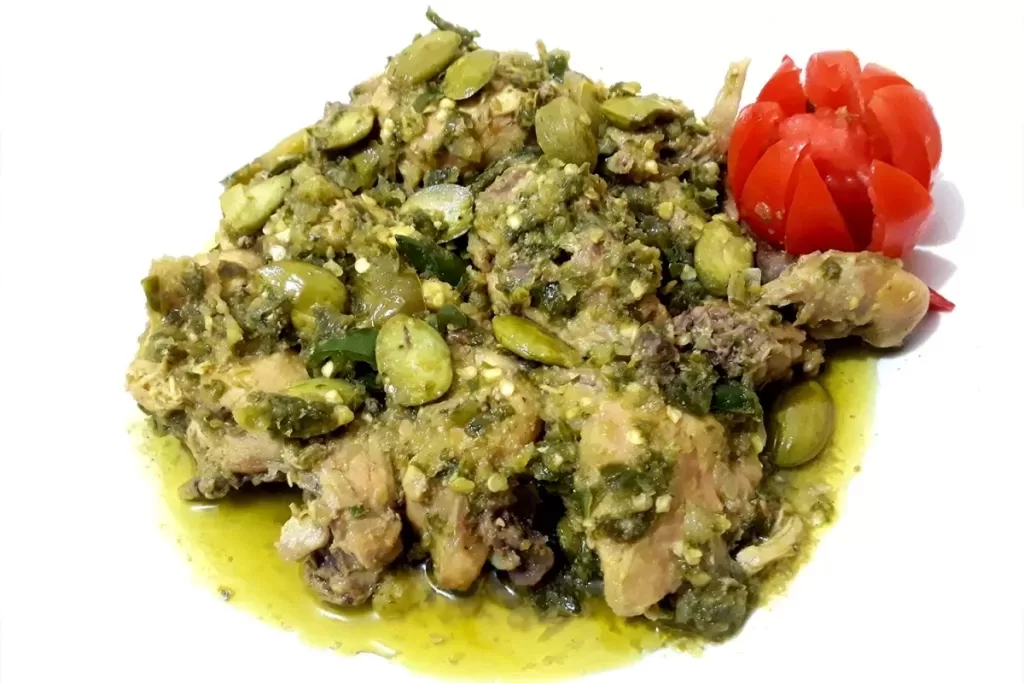 Tumis bumbu uleg hingga harum, lalu masukan cabe hijau, tomat hijau, ayam goreng, gula pasir dan tuangkan air, masak hingga bumbu mersesap sampai air habis. Angkat sajikan.