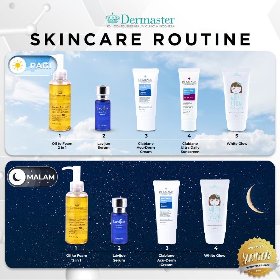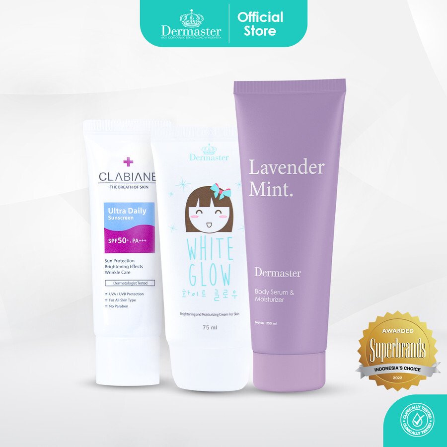 Dermaster Daily Glowing Package dapat digunakan untuk sehari-hari yang diformulasikan untuk membantu mencerahkan kulit, melembabkan kulit, meratakan warna kulit, melindungi kulit dari efek buruk sinar matahari. Dapat dipakai untuk semua jenis kulit, termasuk sensitive.