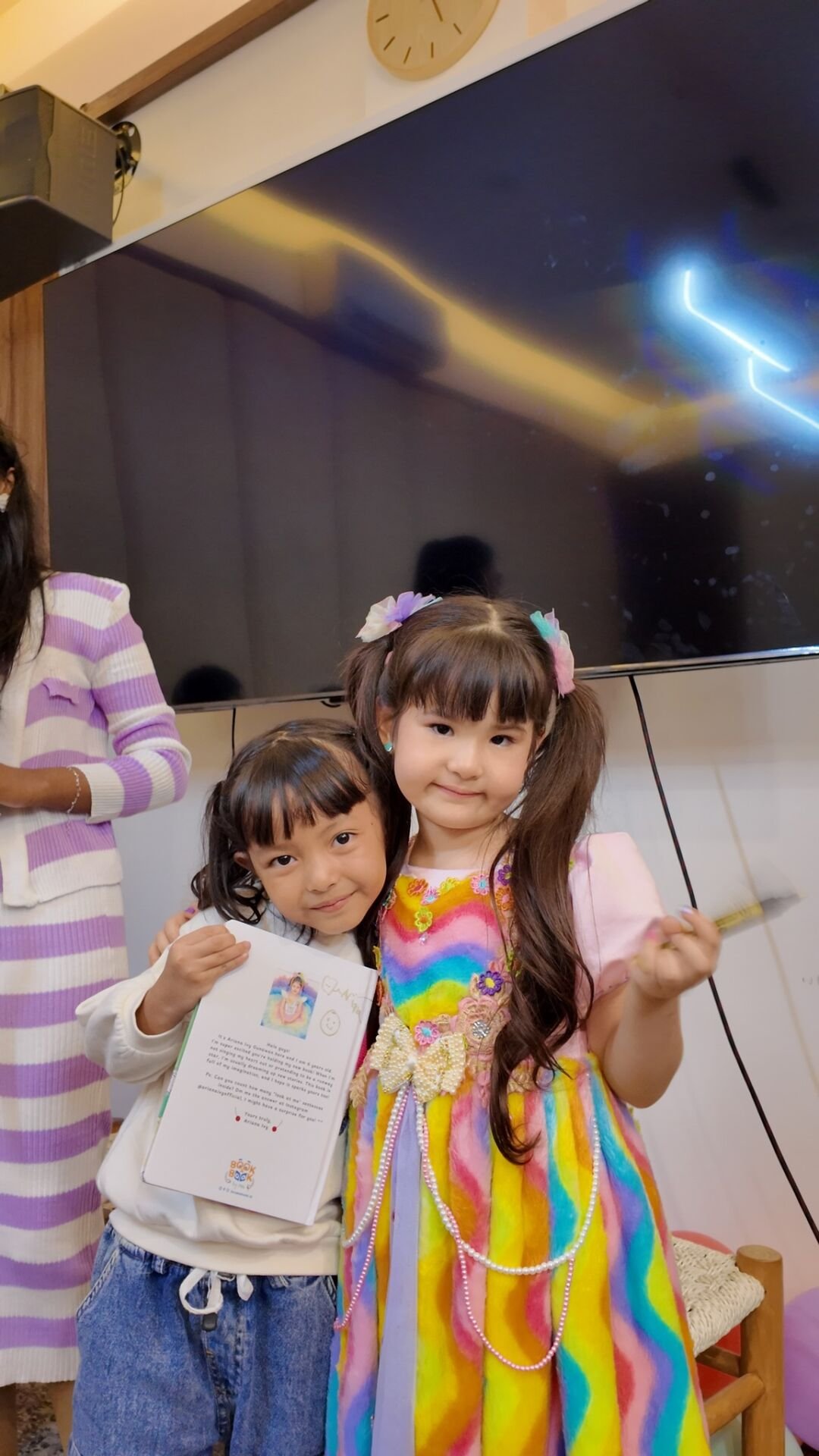 “Nah buku ini bercerita tentang kejujuran dan persahabatan di antara 4 princesses. Untuk percaya diri pada diri sendiri. Believe in yourself. Aku bayanginnya ada galaxy warna-warni pastel, banyak awan dan bintang. Ada kuda ajaib dengan tanduk emas dan aku punya sayap emas. Semua itu menggambarkan bahwa setiap anak bisa berkarya dengan imajinasinya sendiri,” tambah Ariana.