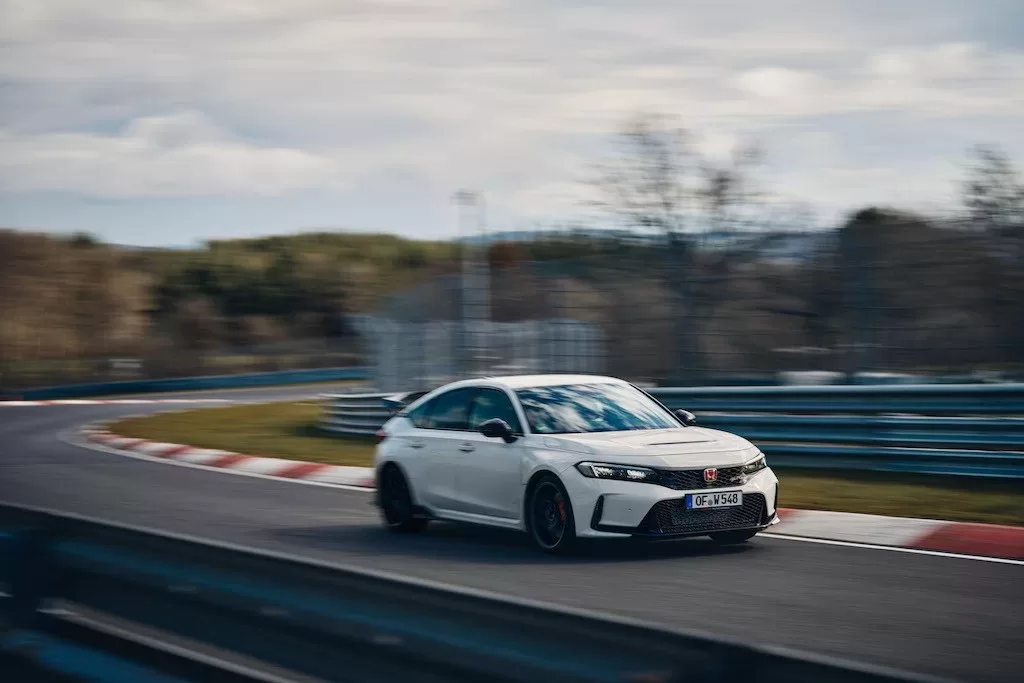 Honda Civic Type R 2023 yang serba baru, kendaraan produksi Honda paling bertenaga yang pernah dijual di AS, telah mencetak rekor baru untuk mobil penggerak roda depan1 di sekitar Nürburgring Nordschleife sepanjang 20,8 kilometer yang ikonis di Jerman—dianggap paling menantang sirkuit jalan raya yang pernah dirancang—selama pengujian dan evaluasi kinerja. Catatan waktu putaran baru yang diukur secara resmi yaitu 7 menit 44,881 detik2 lebih lanjut menunjukkan peningkatan kinerja dinamis dari Civic Type R baru yang lebih bertenaga dibandingkan dengan generasi sebelumnya.