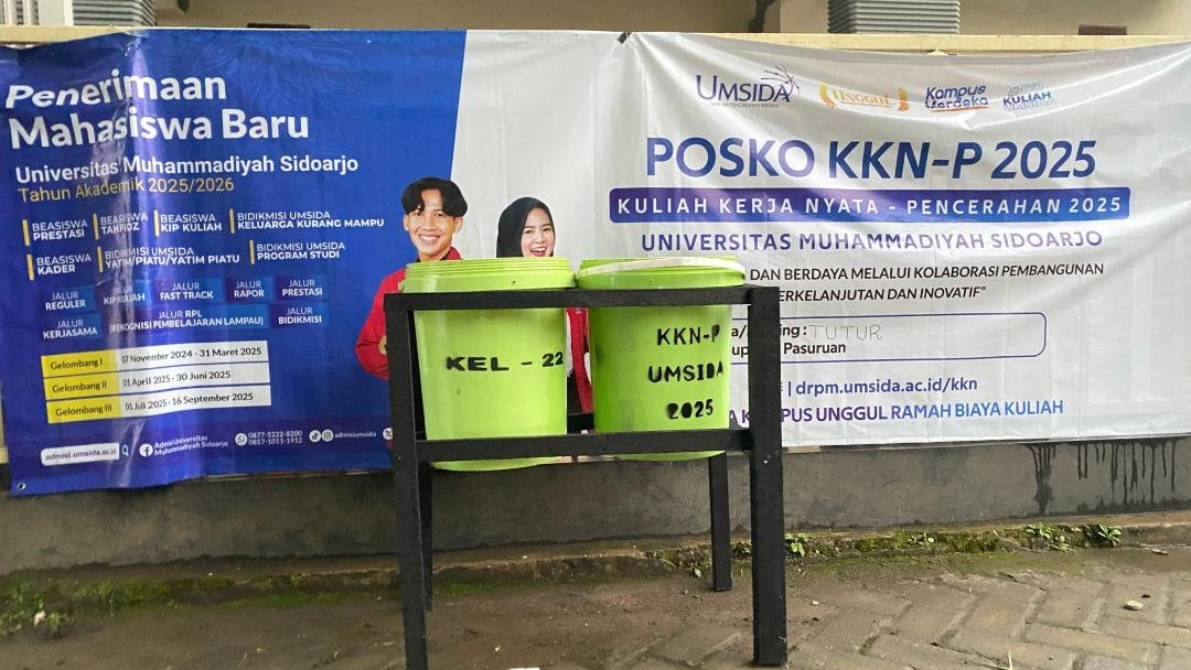 Tutur, Pasuruan– Mahasiswa Kuliah Kerja Nyata-Pencerahan (KKN-P) Kelompok 22 dari Universitas Muhammadiyah Sidoarjo (UMSIDA) menghadirkan inovasi kreatif dalam mengatasi permasalahan lingkungan dengan memanfaatkan wadah cat bekas menjadi tempat sampah. Kegiatan ini ditujukan untuk meningkatkan kesadaran masyarakat dalam pengelolaan sampah, khususnya bagi warga Dusun Krajan 1, Desa Tutur, serta siswa di MI Sunan Ampel Kadipaten.