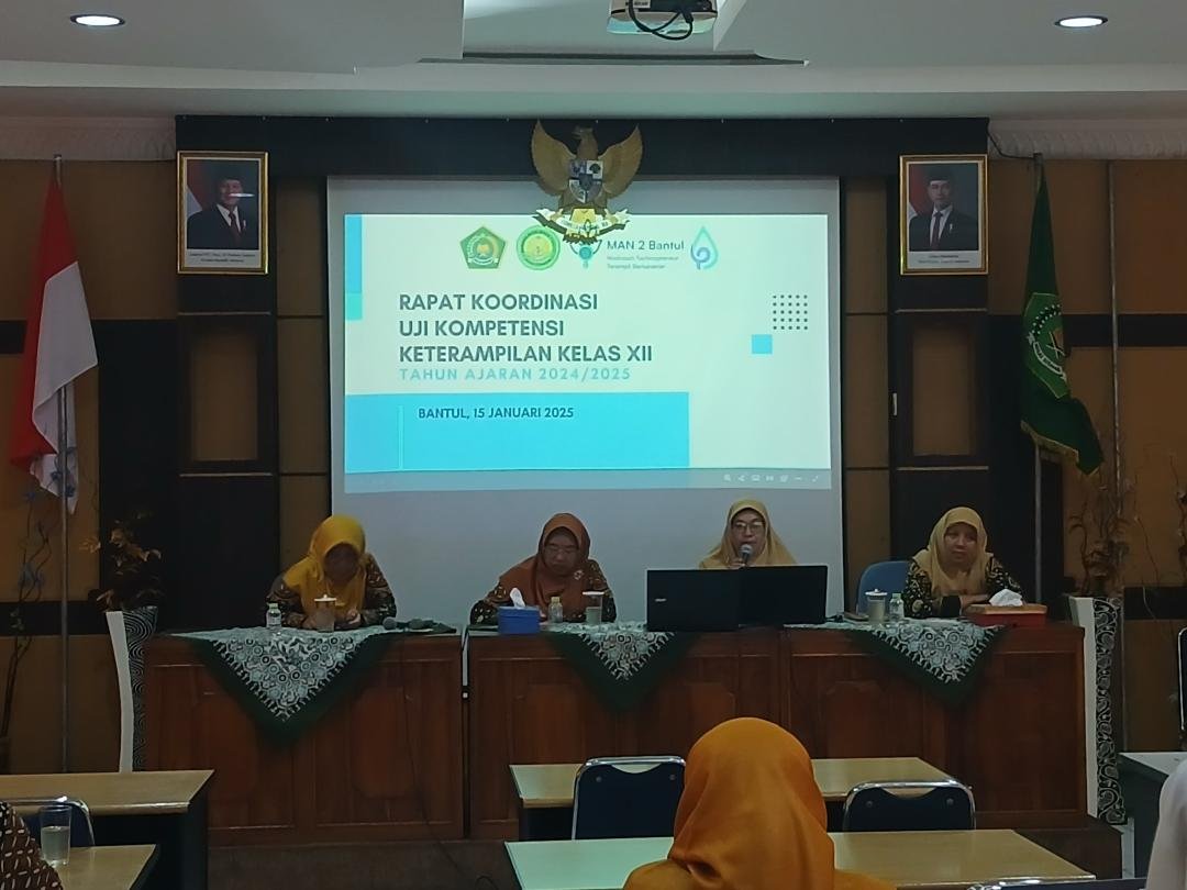 Bantul (MAN 2 Bantul) – MAN 2 Bantul mengadakan rapat koordinasi persiapan pelaksanaan UjiKompetensi Keterampilan (UKK) pada hari Rabu (8/1/25), bertempat di aula madrasah. Rapat inidihadiri oleh panitia inti pelaksana UKK yang terdiri dari tim guru dan staf madrasah yang bertugasmengelola dan mengawasi jalannya uji kompetensi untuk seluruh program keterampilan yang tersedia di MAN 2 Bantul. Agenda ini bertujuan untuk memastikan pelaksanaan UKK berjalan dengan lancar, terorganisasi, dan sesuai dengan standar yang telah ditetapkan