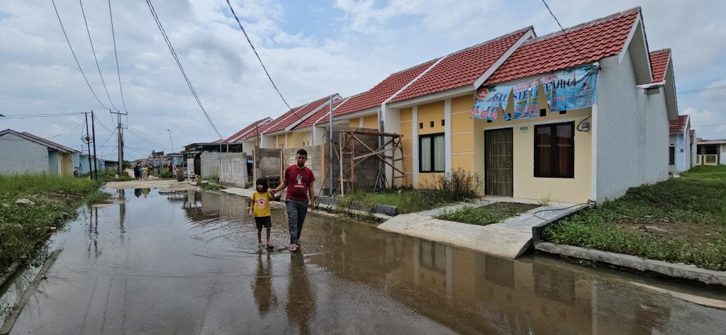 Rumah subsidi Kebanjiran : Salah satu perumahan bersubsidi di Bekasi yang sering mengalami kebanjiran . (Foto Dok. Kementerian PKP)