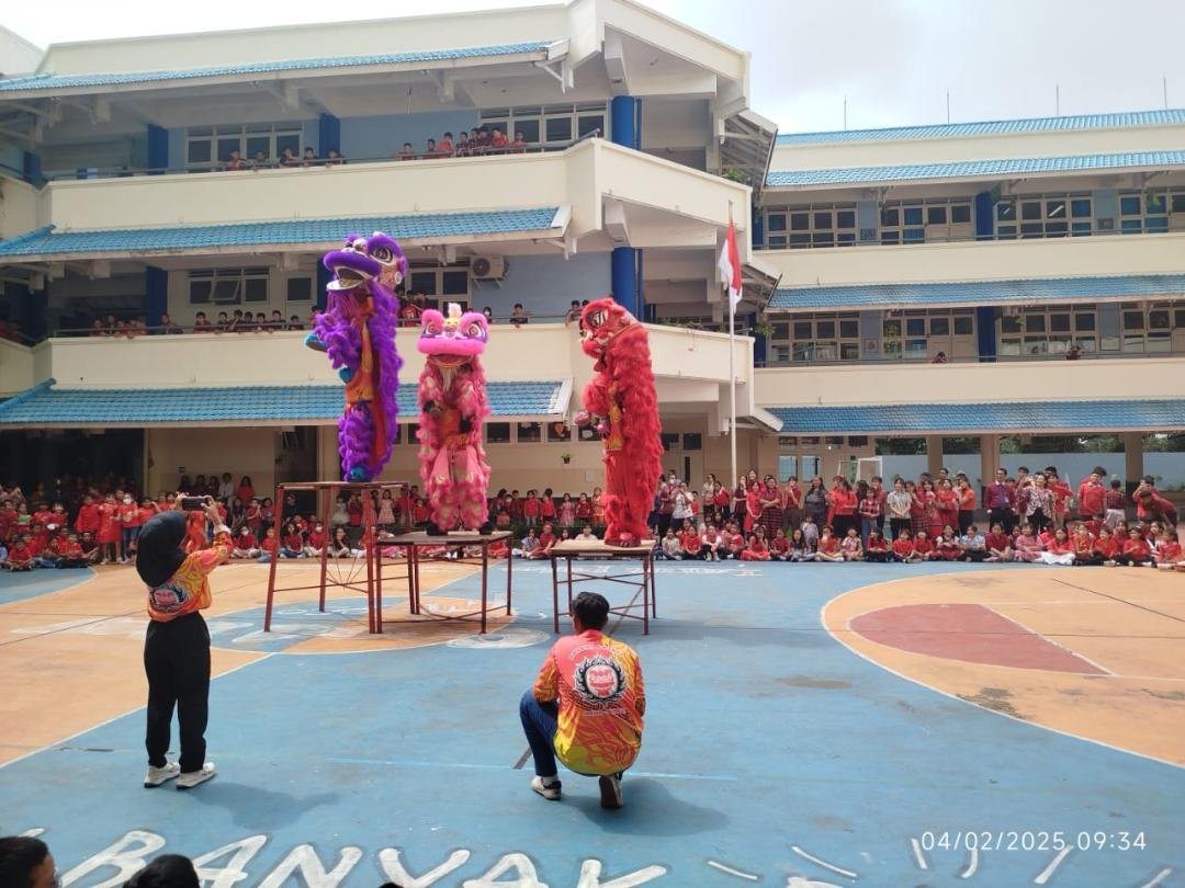 Para siswa tampak antusias menyaksikan atraksi Barongsai yang menari dengan lincah mengikuti irama tambur dan simbal. Beberapa siswa juga mendapat kesempatan untuk memberikan angpao kepada Barongsai, yang dipercaya membawa keberuntungan dan rezeki.