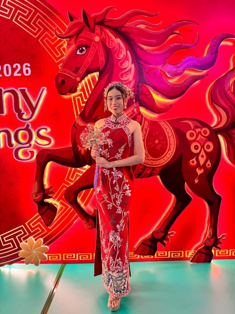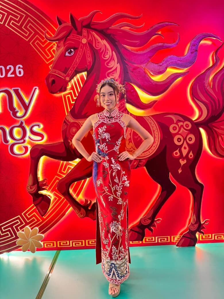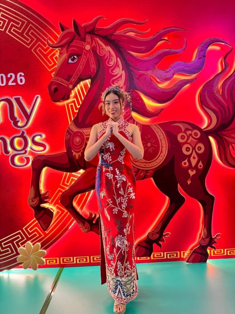 Penampilannya tidak hanya memukau secara visual, tetapi juga menghadirkan karakter dan pembawaan yang kuat. Dengan langkah yang mantap serta ekspresi yang penuh penghayatan, Naillah berhasil menghidupkan filosofi perayaan Imlek yang sarat makna kebahagiaan, harapan, dan keberuntungan.