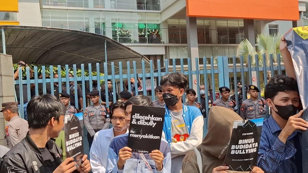 Perhimpunan Mahasiswa Hukum Indonesia Gelar Aksi Demo di Depan Binus School Simprug: Tolak Kasus Bullying di Sekolah
