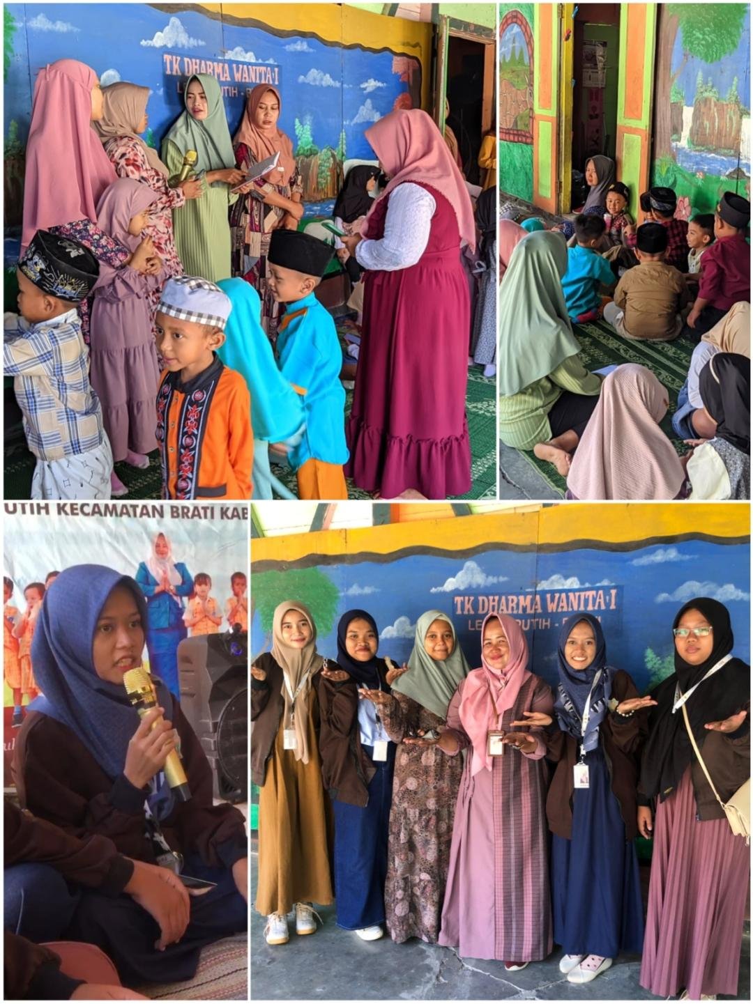Perkuat Sosial Keagamaan Anak Usia Dini Melalui Peringatan Maulid Nabi di TK Dharma Wanita 1 Lemah Putih – Grobogan, 18 September 2024 – Mahasiswa program studi PIAUD Fakultas Tarbiyah IAIN Kudus yang melaksanakan KKN-MB 2024 di desa Lemahputih kecamatan Brati kabupaten Grobogan berkolaborasi dengan TK Dharma Wanita 01 Lemahputih dalam memperingati Maulid Nabi Muhammad SAW. Pelaksanaan peringatan Maulid Nabi Muhammad SAW merupakan momen yang penting bagi umat Islam sebagai bentuk cinta kepada Rosulullah Muhammad SAW.