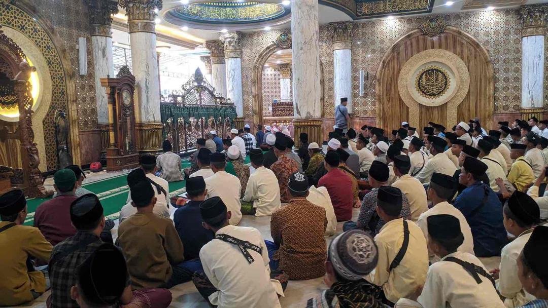 Sebelum pemberangkatan, rombongan peziarah bersama masyarakat sekitar yang menyaksikan, turut khidmat berdoa untuk keselamatan dan kelancaran selama ziarah.
