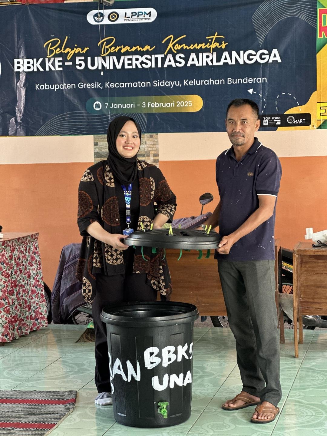 Mahasiswa Belajar Bersama Komunitas (BBK) 5 Universitas Airlangga (UNAIR) melaksanakan kegiatan BUDIKDAMBER (Budidaya Ikan Dalam Ember) yang merupakan kegiatan sosialisasi aquaponik. Kegiatan ini dilaksanakan pada tanggal 25 Januari 2025 di Pendopo Balai Desa Bunderan, Kecamatan Sidayu, Kabupaten Gresik. Acara berlangsung dari pukul 09.30 WIB hingga 11.00 WIB, kegiatan dihadiri oleh 25 warga desa Bunderan meliputi Pemerintah Desa, Ibu-ibu PKK, dan karang taruna. Kegiatan ini dipandu oleh 10 mahasiswa BBK 5 Unair dengan pemateri Dini Ramadhania Illah, Mahasiswa program studi Akuakultur Fakultas Perikanan dan Kelautan (FPK).