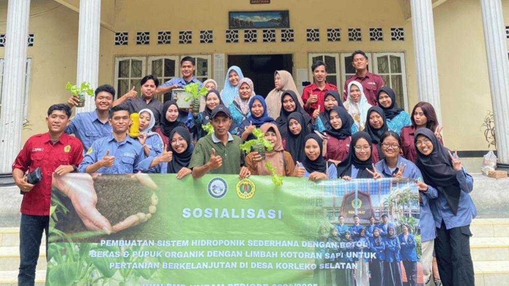 Jum’at, 31 Januari 2025—Dalam upaya mewujudkan pertanian berkelanjutan, Kelompok KKN PMD Universitas Mataram, Korleko Selatan berhasil mengadakan Sosialisasi dengan memanfaatkan botol bekas sebagai media hidroponik dan mengolah kotoran sapi menjadi pupuk organik. Kegiatan ini dilaksanakan pada Jum’at, 31 Januari 2025 ini bertempat di Kantor Desa Korleko Selatan, Kecamatan Labuhan Haji, Kabupaten Lombok Timur, dan mendapat sambutan antusias dari warga yang hadir.