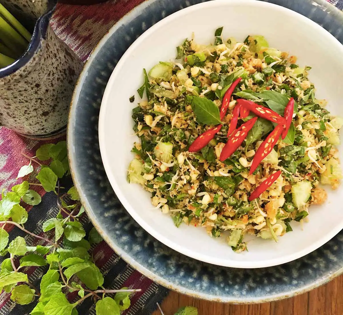 2. Siapkan bahan2 sayuran di mangkuk saji yg agak besar, aduk rata semua bahan dengan kelapa parut